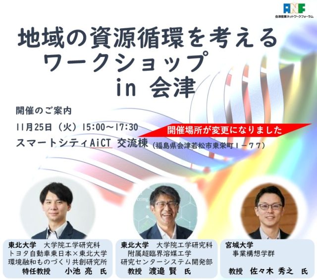 場所: スマートシティAiCT 交流棟(福島県会津若松市東栄町1−77)※変更になりました
