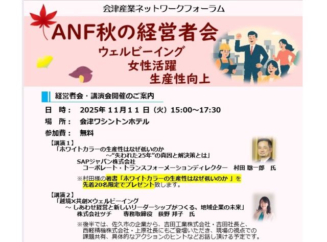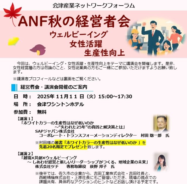 今回は、ウェルビーイング・女性活躍・生産性向上をテーマに講演会を開催します。